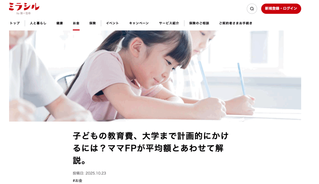 「ミラシルby第一生命」さんで教育費に関する取材協力させていただきました。
