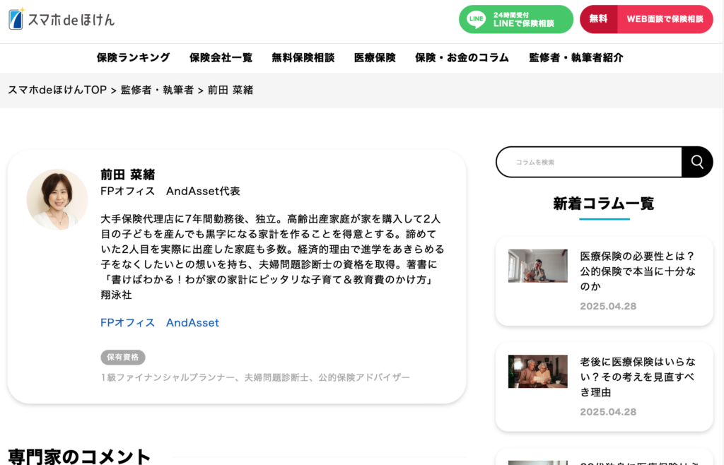 【メディア掲載】 スマホdeほけん 商品コメントさせていただきました 2025年4月29日 最終更新日:2025年10月4日 メディア掲載 保険比較サイト「スマホdeほけん」さんで「終身医療保険プレミアムZ」と「ネオdeいりょう」のコメントをさせていただきました。