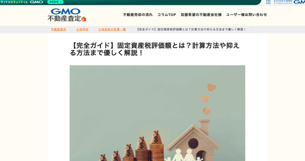 「GMO不動産査定」さんで固定資産税に関する記事の監修をさせていただきました。