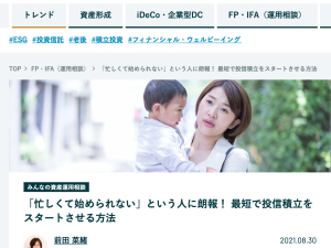 • 【メディア掲載】finasee「忙しくて始められない」という人に朗報! 最短で投信積立をスタートさせる方法