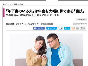 • 【メディア掲載】東洋経済オンライン「年下妻のいる夫」は年金を大幅加算できる「裏技」