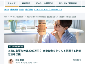 • 【メディア掲載】finasee「本当に必要なのは2000万円?老後資金をきちんと把握する計算方法を伝授」