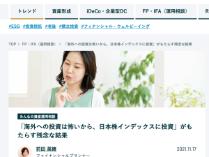 • 【メディア掲載】finasee「海外への投資は怖いから、日本株インデックスに投資」がもたらす残念な結果