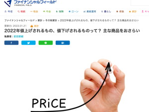 • 【メディア掲載】ファイナンシャルフィールド「 2022年値上げされるもの、値下げされるものって? 主な商品をおさらい」