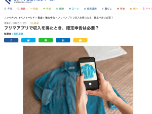 • 【メディア掲載】ファイナンシャルフィールド「フリマアプリで収入を得たとき、確定申告は必要?」
