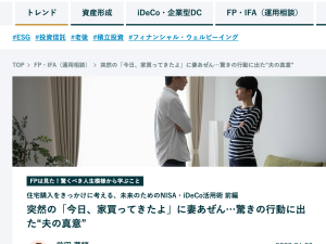 • 【メディア掲載】finasee 「妻あぜん…完全別財布・収支不干渉のイマドキ夫婦が直面した“危機的な状況"