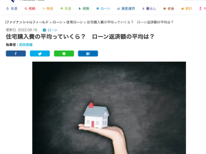 • 【メディア掲載】ファイナンシャルフィールド「 住宅購入費の平均っていくら? ローン返済額の平均は? 」