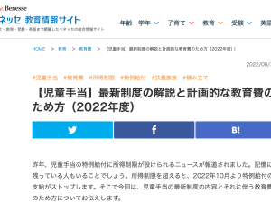 • 【メディア掲載】ベネッセ教育情報サイト【児童手当】最新制度の解説と計画的な教育費のため方(2022年度)