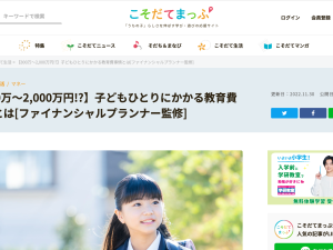 • 【メディア実績】ベネッセ教育情報サイト「教育費はいくらかかる?貯め方は?大学までの平均額や補助制度をご紹介」