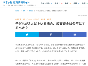 • 【メディア掲載】ベネッセ教育情報サイト「子どもが2人以上いる場合、教育資金は公平にするべき?」
