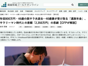 • 【メディア掲載】資産形成ゴールドオンライン 「年収800万円・46歳の脱サラ夫逝去」