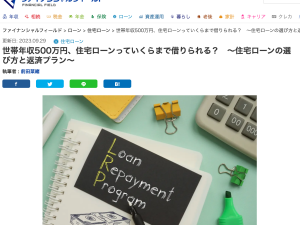 • 【メディア実績】ファイナンシャルフィールド「世帯年収500万円、住宅ローンっていくらまで借りられる?」