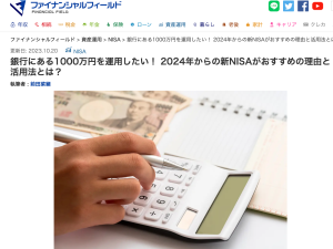 • 【メディア実績】ファイナンシャルフィールド「銀行にある1000万円を運用したい! 2024年からの新NISAがおすすめの理由と活用法とは?」